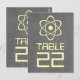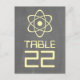 Tarjeta postal con un sencillo símbolo atómico de color amarillo en el fondo de una pizarra. ¡Esta tarjeta de mesa es muy divertida y perfecta para una pareja de entusiastas de la ciencia! Fácil de personalizar, simplemente agregue los números de tabla apropiados en el espacio proporcionado. Haga clic en "Personalizar" para encontrar más opciones de personalización.