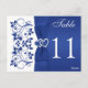 Esta romántica tarjeta postal de número de mesa floral floral azul y blanca tiene una cinta azul IMPRESIONADA y un arco con un par de joyas de diamante IMPRESIONADAS y un purpurina azul FAUX se unió a los corazones que coinciden con la invitación de boda que se muestra a continuación. Debe personalizar la tarjeta para CADA número de tabla que necesite, cambiando el "11" a cada número que necesite, agregándola a su carrito y luego repitiendo el proceso hasta que tenga el número correcto de tarjetas individuales en su carrito. Si tiene alguna pregunta, envíe un correo electrónico a niteowlstudio@gmail.com.