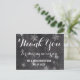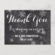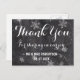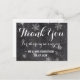 Tarjeta de agradecimiento a los modernos copos de nieve de invierno. Elegante, elegante y original pizarra negra con copos de nieve blancos. Un elegante tema de bodas en blanco y negro, perfecto para el maravilloso paisaje invernal, los Navidades o el tema boda de Nochevieja. El texto es totalmente personalizable