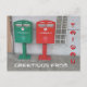 Greetings from Taiwan colourful postcard featuring a photograph of red and green postboxes (mailboxes) seen in Taipei. The text is fully customisable.
