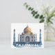 Adorn your collection with the timeless beauty of India with this stunning Taj Mahal postcard! This captivating watercolor illustration features the magnificent Taj Mahal, one of the Seven Wonders of the World and a revered UNESCO World Heritage Site. The artistic style beautifully captures the intricate details of this iconic white marble mausoleum, with its golden dome and elegant minarets, set against a pristine background.