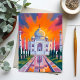 Tarjeta de viaje Taj Mahal Watercolor Sunset India