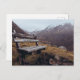 Hermosa foto de un banco de madera desgastado en la ladera de una montaña, con las iniciales de dos enamorados talladas en una tabla del respaldo. Personaliza esta postal con tus propias iniciales y las de un ser querido, o envíala a una pareja de enamorados que te importen.