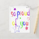 Bellamente diseñado postcard por miss T diseños. La tarjeta postal dice 'Estoy muy orgullosa de ti'. Hágale saber a alguien lo bien que han hecho y lo orgulloso que realmente estás. Diseñado con colores vivos y efecto crayón.