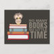 Un tierno búho descansa sobre un montón de grandes libros reflexionando sobre cómo en el mundo puede leerlos todos. Una gran postal para cualquier amante de los libros o experto en libros en su lista.