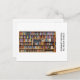 Una postal con fotos de estanterías de libros llenas hasta el borde con libros y la cita "¡Tantos libros, tanto que hacer!" (© Mira). Esto último es un juego con "Tantos libros, tan poco tiempo" de Frank Zappa, una cita que Zappa escribió en uno de sus cuadernos.
