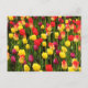 El morado, el rojo, el naranja y el amarillo se combinan en un bonito tapiz multicolor contra el oscuro fondo verde de hojas y tallos en el Festival de Tulipanes del Valle de Skagit en Monte Vernon, Washington.