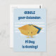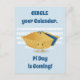 Tarjeta postal con una ilustración de dibujos animados de una tarta de arándanos sonriente y casi completa. Los números de Pi son visibles en varios decimales. Esta tarjeta postal permite a todos saber que se acerca el Día de Pi. Da a la gente tiempo para tomar su calculadora favorita, comprar harina extra y elegir la receta de tarta perfecta.