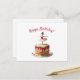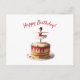 Una tarjeta postal de cumpleaños que presenta una ilustración de una tarta de cumpleaños con una figura de bailarina en la parte superior. Esta es una excelente tarjeta postal si deseas celebrar el cumpleaños de tu joven hija o nieta que es una talentosa bailarina.