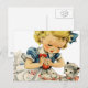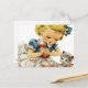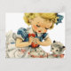 Postal Tarta de cumpleaños retro de niña gato arte infant