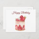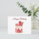 Postal Tarta De Fresa Acuarela Cumpleaños Feliz