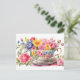 Postal Taza de té de acuarela con hermosas flores