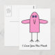 Te Amo Tanto. Postal. Imagen cómica de pájaro rosa con las alas estiradas. Sencillo estilo minimalista de tonalidad. Personalizable completo. El texto dice: Te Amo Tanto".