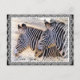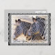 Dos hermosas cebras con recorte de encaje blanco para una postal de marco.