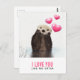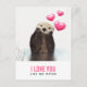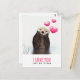 Postal de San Valentín / Amor que dice: "Te amo como ninguna nutria" con una imagen de una nutria linda con corazones flotando hacia arriba. Los corazones son rosas y chubby, con una brillante reflexión. Esta nutria es bastante adorable con sus patas descansando bajo su pellita peluda. Su piel se ve mojada por pasar el rato en el agua.