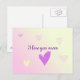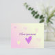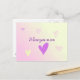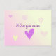 Envía un mensaje sincero con esta tarjeta postal de "Te amo, mamá". Su fondo pastel florece con amor, adornado con un conjunto de corazones en tonos violeta y amarillo, simbolizando el calor y la vitalidad del amor de una madre. La declaración simple pero poderosa en un guión elegante captura la esencia de la gratitud y el afecto. Ya sea por el Día de la Madre, un cumpleaños, o simplemente un día aleatorio de apreciación, esta postal es una hermosa manera de expresar tus sentimientos y mantener fuerte el vínculo maternal.