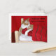 El naranja y gato blanco de gatito de tabby con su oso Teddy rojo dice que te ama más que su postal de foto El día de San Valentín de Teddy Bear