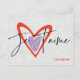 Este encantador "je t'aime" (te amo en francés) con el morado y el corazón rojo es un diseño perfecto para mostrar tu amor con una postal. También puedes personalizar la postal con el nombre de tu elección para que tu atención sea más especial. (regalo)