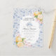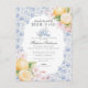 ¡Es hora de tomar el té con la futura mamá! Eleva tu próximo baby shower con este delicado ramo de flores de chinoiserie azul claro. Este tema floral caprichoso está inspirado en el encanto de un jardín inglés, con un patrón de toile pastel con limones y flores suaves rosadas.