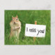 Adorable y pequeño chipmunk parado en la alta hierba de verano junto a su cartel que dice: ¡Te echo de menos! Perfecto para esa distancia alguien especial.... personalizable total para que usted lo personalize como usted quiera!