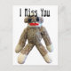 Una tarjeta postal de un mono calcetín lindo que dice que te extraño y con un área de mensajes personalizado opcional en el reverso de la tarjeta.