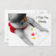 Personaliza agregando tu nombre o texto personalizado a esta linda postal con una fotografía de una niña que usa una cubierta de pañales rojos, un bolígrafo en mano, sentada en un dibujo que hizo con un corazón rojo y las palabras que te amo. La cita dice: Te echo de menos papá. Los pétalos de flores amarillas están dispersos por toda la imagen. Un regalo perfecto para un padre a su hija o un chica a su padre.