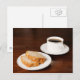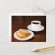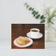 ¿Una imagen fotográfica de una linda taza de café con algo de pan de plátano para comer? Viene con las palabras y la invitación para "Té matutino... ¿alguien?"