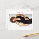 Tarjeta que dice: "Te queremos", junto con una fotografía de una mujer sosteniendo su perro.