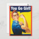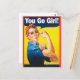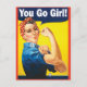 ¡Chica! Es el mensaje motivador con la imagen de mujer fuerte de la poster de la Segunda Guerra Mundial de la cosecha clásica Rosie the Riveter "We Can Do It". Tarjeta de aliento para mostrar apoyo a alguien que está enfrentando un desafío de cualquier tipo.