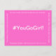 Personalizados provocativos y con cáncer de mama y Ilustraciones humorísticos, por April McCallum. ¡Esta divertida postal rosa y blanca contiene las palabras en negrita #YouGoGirl! (con la etiqueta de medios sociales) en el centro, rodeado de otras palabras motivadoras. El texto adicional incluye: "Piensa en pensamientos felices.", "Un pequeño paso amargo.", "Disfruta de los momentos.", "Puedes hacer esto.", y más. ¡Envíe algo de "felicidad" a alguien que ame hoy!