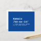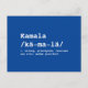La pronunciación de Kamala define tipografía de máquina de escribir blanca azul Postcard. Texto blanco sobre fondo de color editable en azul.