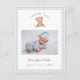 Cute Teddy Bear baby boy Thank you Birth announcement postcard with photo and birth stats with Blue and white gingham border.