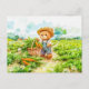 charming watercolor illustration of a teddy bear harvesting bright orange carrots from a lush green field. Perfect for childrens stories and educational materials.