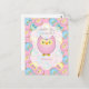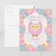 Postal Tema de Cumpleaños de Niña Bebé con Búho Rosa Past