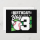 Postal Tema de fiesta de béisbol para niño de 3 años Cump