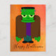 Monstruo de franco verde adorable de Halloween. Color verde negro y colores naranjas. Un tema monstruoso de Halloween.