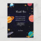 Tarjeta de agradecimiento para un cumpleaños espacial Esta tarjeta de agradecimiento de cumpleaños espacial incluye texto como "gracias por venir a mi fiesta de cumpleaños... más detalle, esta tarjeta de agradecimiento de cumpleaños con tema espacial es perfecta para la fiesta de cumpleaños de un bebé, niños que aman el espacio. Esta tarjeta de agradecimiento de cumpleaños con tema espacial es muy fácil de personalizar; simplemente haga clic en el botón "personalizado" y agregue sus propios detalles.