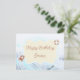 Dos líneas de texto de personalizable en la parte delantera y un párrafo de texto personalizado en la parte trasera resaltan esta postal de felicitación de cumpleaños con temática oceánica que incluye un solo cangrejo, un salvavidas y una nota en una botella flotante.