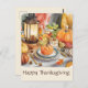 Celebra la calidez y la unión de esta temporada de Gratitude con esta preciosa carta de saludo ilustrada. El diseño presenta una acogedora escena acuática de una mesa festiva de Acción de Gracias, adornada con calabazas, hojas de otoño y una linterna brillante. Perfecto para enviar mensajes sentidos a sus seres queridos, esta tarjeta captura la esencia de la temporada de fiestas. Comparte la alegría y gratitud del día de Acción de Gracias con esta encantadora y elegante tarjeta de saludo.
