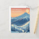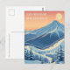 Montañas nevadas de la montaña Loon, New Hampshire! Esperamos que tengas unas maravillosas vacaciones de esquí. Esta postal presenta un precioso paisaje montañoso azul-gris frente a un cielo naranja amarillo. Todas las frases de texto se pueden personalizar para que se adapten a su gusto.