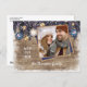 Única, clásica, moderna, bonito y decorativa tarjeta de vacaciones. ACOGIDA CON AMOR DE texto y habitación a personalizar o personalización con una foto y nombres (o apellido) de su elección en una casa de campo rústica estilo casa de campo templada estilo casa de campo de madera barniz patrón de textura. Y un poema de bienvenida de temporada de personalizable en el reverso de la tarjeta.