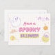 Envía algunas vibraciones dulces de Halloween con esta adorable postal que incluye un mensaje pastel de "Ten un Halloween Sombrío". El diseño incluye un fantasma lindo, un murciélago sonriente y una variedad de caramelos coloridos, todo puesto contra un fondo de red de luz. Perfecto para los amantes de una toma más suave y lúdica de Halloween, esta postal es ideal para compartir la alegría de Halloween con amigos y familiares. Los colores pastel y los encantadores ilustraciones lo convierten en una deliciosa elección para todas las edades.