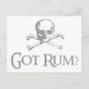 Una calavera, los huesos cruzados y la leyenda Consiguieron Rum en gris claro en camisetas piratas, tazas de café, bolsas de té, botones, corbatas de cuello, franqueo, tarjetas de notas y más grandes regalos piratas para el capitán de su barco.