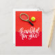 Postal Tenis con raqueta y pelotas en rojo para jugador