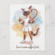 Trae risas a la cancha con esta lúdica tarjeta de saludo que incluye a un glamoroso jugador de tenis siamés. Perfecto para los amantes del gato y del tenis, esta tarjeta combina un juego de tenis humorístico con elegantes obras de arte acuáticas. Una gran elección para cumpleaños, celebraciones o simplemente compartir una sonrisa con tu pareja de tenis favorita.