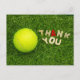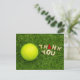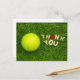 Tarjeta de agradecimiento para jugador de tenis con pelota de tenis en hierba verde. Perfecta para cualquier fanático o jugador de tenis, esta tarjeta seguro que será apreciada.