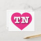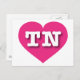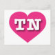 Esta postal contiene un vibrante corazón rosado caliente que contiene las letras negrita, blanca y alta del funda TN, la abreviatura oficial del estado de Tennessee, el estado voluntario.