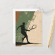 Esta sencilla postal temática al tenis cuenta con una silueta de un tenista que se prepara para tomar un tiro con arco. Este es un bonito diseño para los aficionados al tenis y los jugadores.