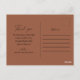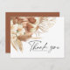 Este elegante y moderno Terracotta Floral Boho Boda Thank You Postcard presenta cautivadores acuarelas florales que crean un toque moderno en los motivos botánicos clásicos. Los ricos tonos de terracota de las delicadas flores crean un ambiente bohemio cálido y acogedor, perfecto para expresar su apreciación. El encanto rústico y los tonos tierra de la temporada de otoño, combinados con la tipografía contemporánea de escritura caligráfica, le permiten transmitir su gratitud con un toque de belleza natural. Ya sea que envíe su agradecimiento a sus seres queridos o que exprese su más sincero aprecio a los huéspedes bodas, esta postal única y elegante seguramente dejará una impresión duradera.