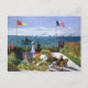 Terraza en Sainte Adresse, 1867. La terraza del Sainte Adresse by Monet expresa toda la euforia de un buen día de verano. El rojo de los gladiolos contrasta con el azul del mar, salpicado de veleros, y a lo lejos se encuentran las grandes barandillas que conducen al puerto de Le Havre. Cuatro personas se relajan en la terraza. En primer plano están Adolphe Monet y su hermanastra, ambas vistas desde atrás; sentadas en sillas de jardín contemplando la escena que se extiende delante de ellos. Junto a la barandilla se encuentra la prima de Claude Jeanne Lecadre, con un vestido de color pálido y charlando con un joven con un sombrero de alto nivel. La paz y la belleza reinan sobre todo, reflejando el ambiente festivo que reina en Sainte Adresse. Claude Monet (1840-1926) fue fundador de la pintura impresionista francesa, y el profesional más consistente y prolífico de la filosofía del movimiento de expresar las propias percepciones antes que la naturaleza, especialmente cuando se aplicaba a la pintura de paisaje plein-air. El término Impresionismo deriva del título de su pintura Impresión, Sunrise (Impresión, levante solar).